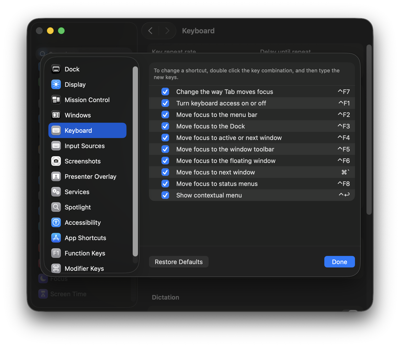 > System Settings > Keyboard > Keyboard Shortcuts